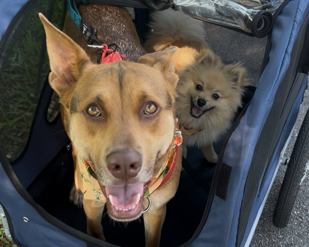 The Pedaling Pups started after Alex lost her beloved Cub to cancer in Jan 2025. She had Cub since he was a puppy and traveled with him everywhere. She was convinced that his dry biscuit food led to his cancer diagnosis and so changed his diet to homemade food and treats only. Unfortunately Cub only lived 4 months after his initial diganosis, even with chemo treatment, but this inspired her to change how she feeds her two new pups, Cooper and Teddy. As Cub got older, he could no longer run with Alex when she rode her bike so she got him a wagon to be pulled behind her so he could still come on adventures. Cooper and Teddy now also ride in the wagon which inspired the name, The Pedaling Pups.