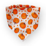 Fall never looked so cute! Our Pumpkin Patch Pup bandana is bursting with bright, cheerful pumpkins scattered across a crisp white background. Perfect for hayrides, pumpkin patch visits, or just cozy autumn walks, this bandana lets your furry friend celebrate the season in style.